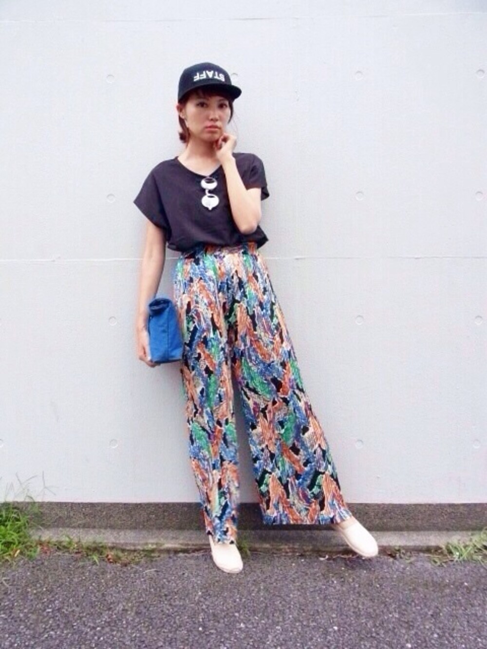 エスニック柄のワイドパンツもキャップと合わせるだけで今年らしく気こなせちゃいます!