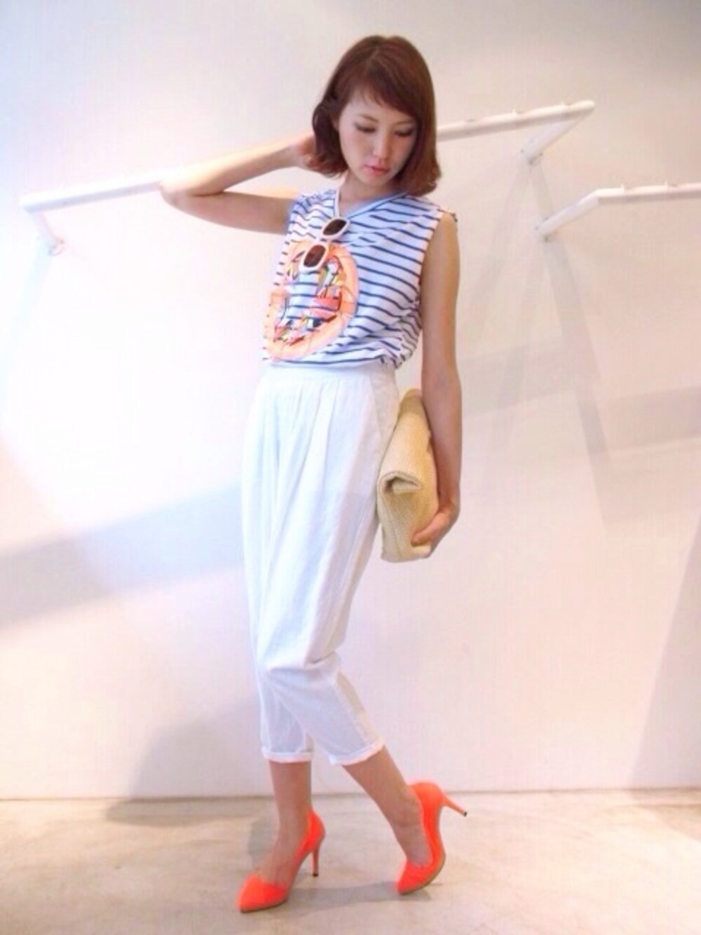今年らしいホワイトパンツをマリンテイストのカットソーと合わせて…