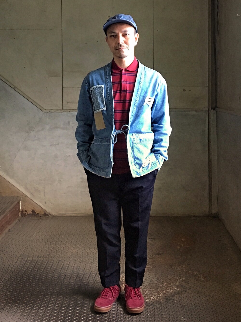 “大人カジュアル”ってよく聞きますが、ボクの生活では9割がカジュアル服なので、今ひとつピンときません。 自分の場合は大人ストリートですかね。 ボトムスはスラックスに見えて、イージーパンツ仕様です。 キャップとかポロシャツなんかも割と定番のアイテムですが、ブランドや変則的なディテールで、普通には見えないようにしてみました。