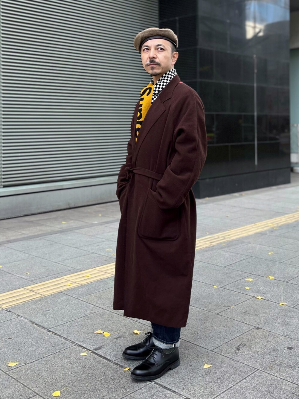 ガウンタイプのコートはガバッと羽織るだけで雰囲気が出るので重宝します。 ウールなので暖かさも◎
