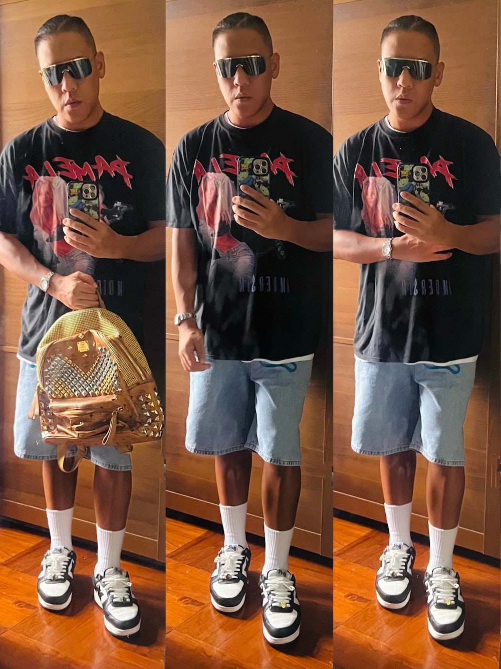 ◾️top: royaltees ◾️pants: billionaire boys club ◾️shoes: A bathing ape ◾️bag : MCM ◾️sunglasses: Gucci