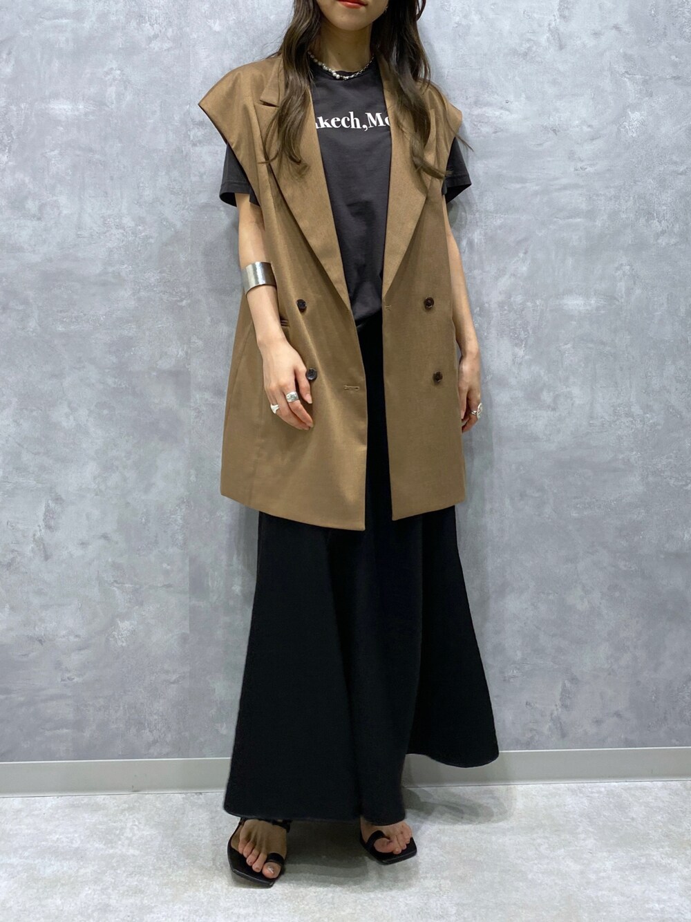 Instagramもチェック♡ ブラウン×ブラックで上品シックコーデ♪ ■アウター (サイズ感:ゆったりめ) 今年トレンドのオーバージレ。 いつものスタイルにプラスするだけでオシャレ見えします! オーバーサイズなので、硬い印象にならず抜け感のあるシルエットに◎ またハリ感のある素材でツヤアイテム・シアーアイテムとの相性がバッチリ⭐︎秋まで長く使えます♪ 肩から腕が隠れるので着痩せアウターとして幅広い方に着ていただきやすいのがポイント。 ヒップがすっぽり隠れる丈感で、ボトムス悩まず合わせられると思います♪ ■スカート (サイズ感:ややぴったり) パールのような艶ラメが特徴的なスカート。 とにかく動くとキラキラしていて綺麗です⭐︎ 暑い夏も涼しい印象にしてくれます◎ ウエスト周りはハイウエストで履く感じではなかったですが、リラックス感のあるゆとりがあったので楽に着れました⭐︎ 丈感が通常のスカートより短めなので小柄さんでも綺麗に足首見せて着れます◎ (※生地感的にしっかりしていて、秋や冬も行けそうだなと感じました⭐︎) ※ホワイトは特に裏地が付いていない分涼しいですが透け感が気になると思うのですペチコートなど合わせると◎