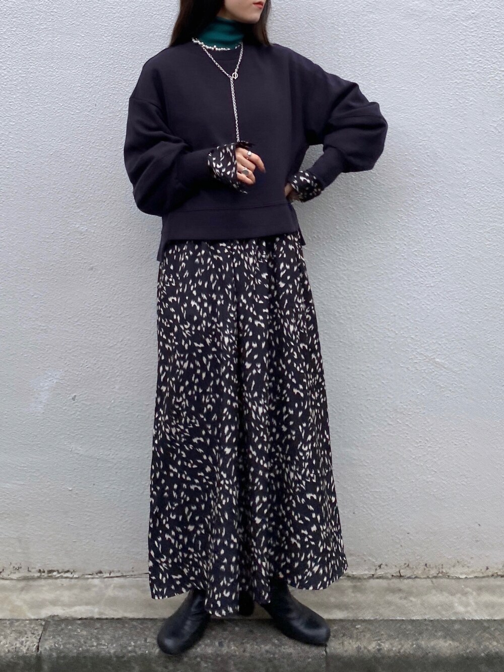 Instagramも見てくれると嬉しいです🌿 ■トレーナー (サイズ感:ジャスト) レイヤードが楽しめるショート丈トレーナー。 ウールが入っている暖かい素材で、とろみ感のあるアイテムとの相性◎ ニットよりカジュアルに…、クラシックな華やかワンピース合わせもカジュアルダウンでき普段使いしやすくなります! ■ワンピース (サイズ感:ジャスト) とろみ感が上品で着痩せ間違いなしのヴィンテージライクワンピース。 胸元のデザインが綺麗で、落ち感のある素材のおかげで腰回りもスッキリカバーしてくれます! クリーム×ブラックの柄配色なので、ハードな印象にならずに優しいクラシックな印象で着ていただけます◎ 袖のボリューム感や胸元のギャザーがシンプルだけど華やかに◎ ウエストの切り替えはしっかりとあるので後ろから見ても脚長効果はバッチリです! ■トップス (サイズ感:ややゆったりめ) ウールでとても軽い万能トップス。 細身なので女性らしいシルエットはもちろんゆるっとしたアイテム合わせも◎