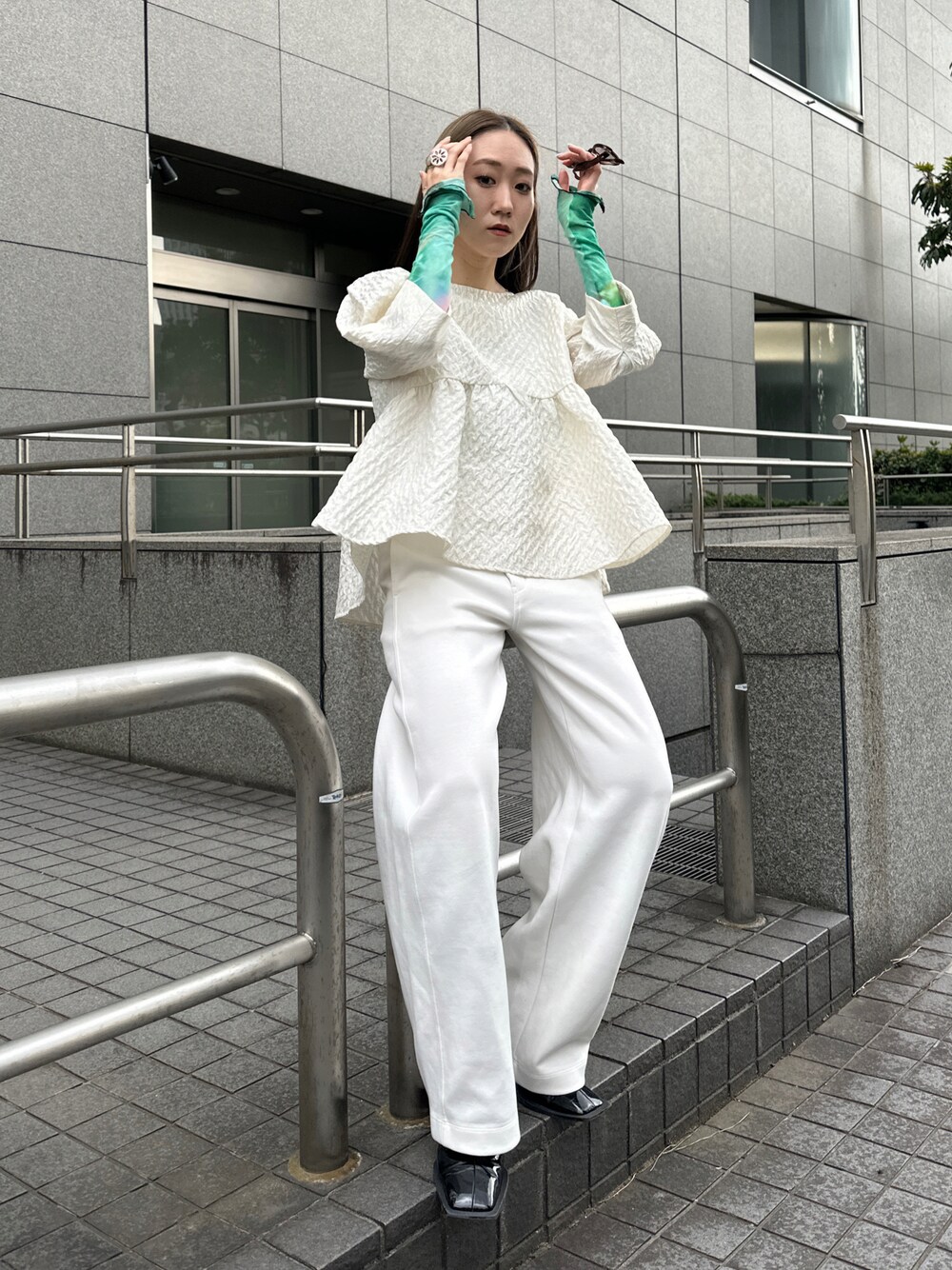 simのシャツ/ブラウス「Flower petals 3Dペプラムトップス」を使ったコーディネート