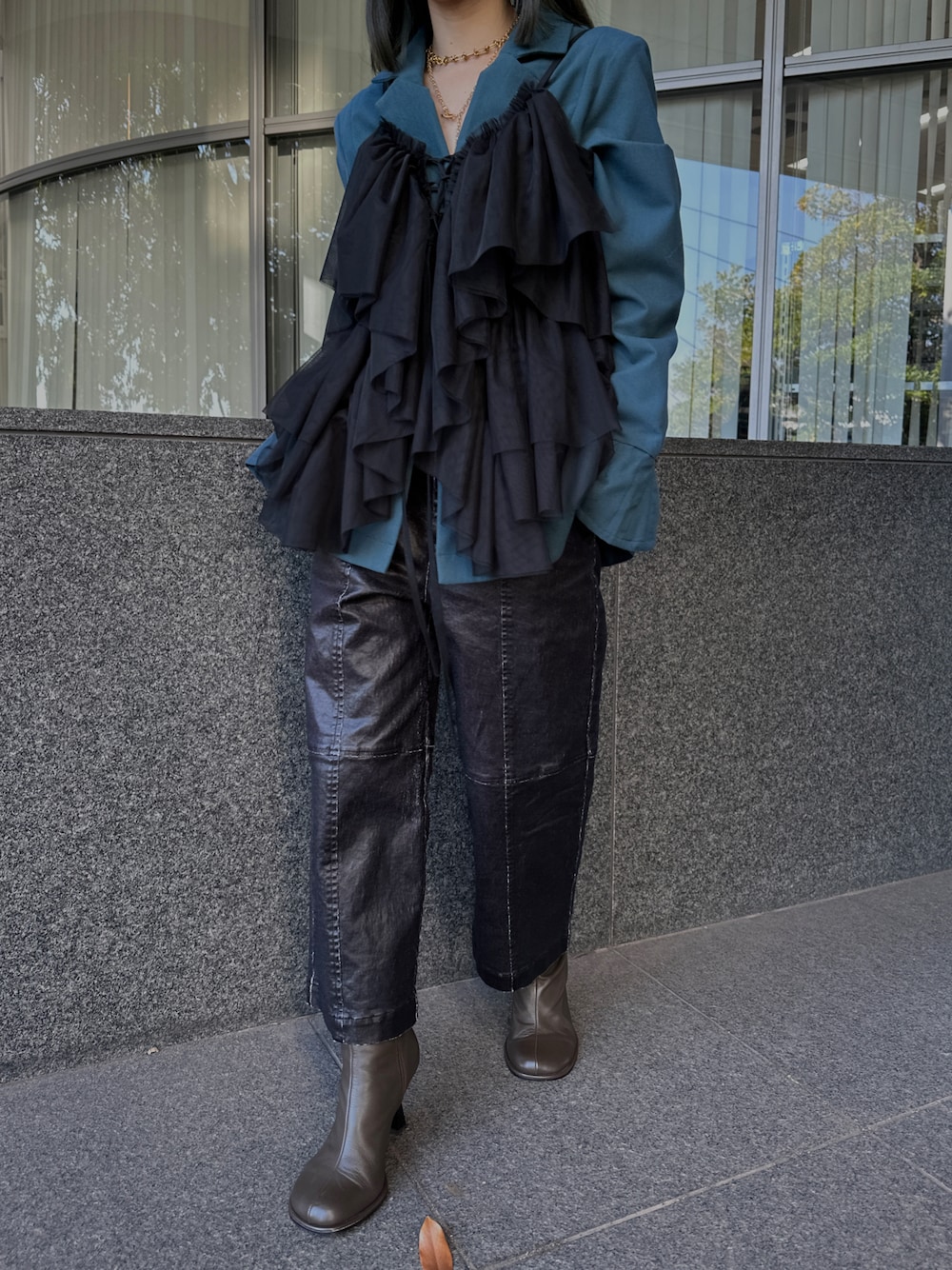 ジャケットにキャミフリルブラウスをレイヤードしたお気に入りスタイル💙