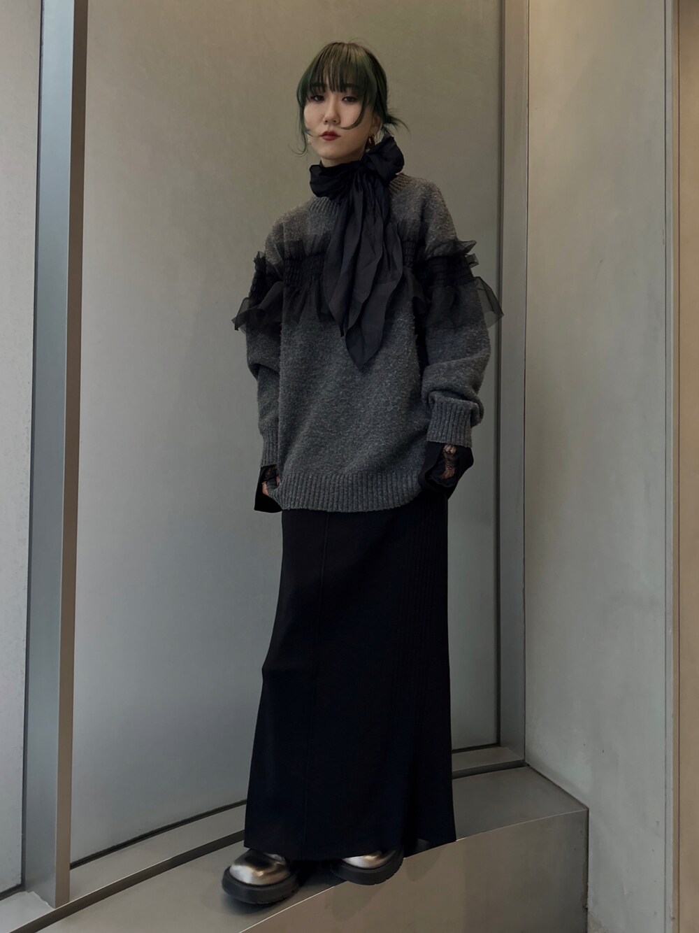 simのドレス「【 Yukko × Ezick 】Lace cuffs パールハーネスセットニットドレス」を使ったコーディネート