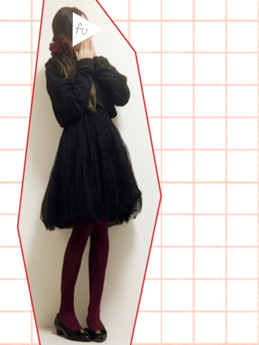 WEGOのメンズパーカー着回し チュールスカートにINして タイツ+パンプス シュシュとタイツの色を合わせて なんとなーくまとめたつもり、です 黒×赤