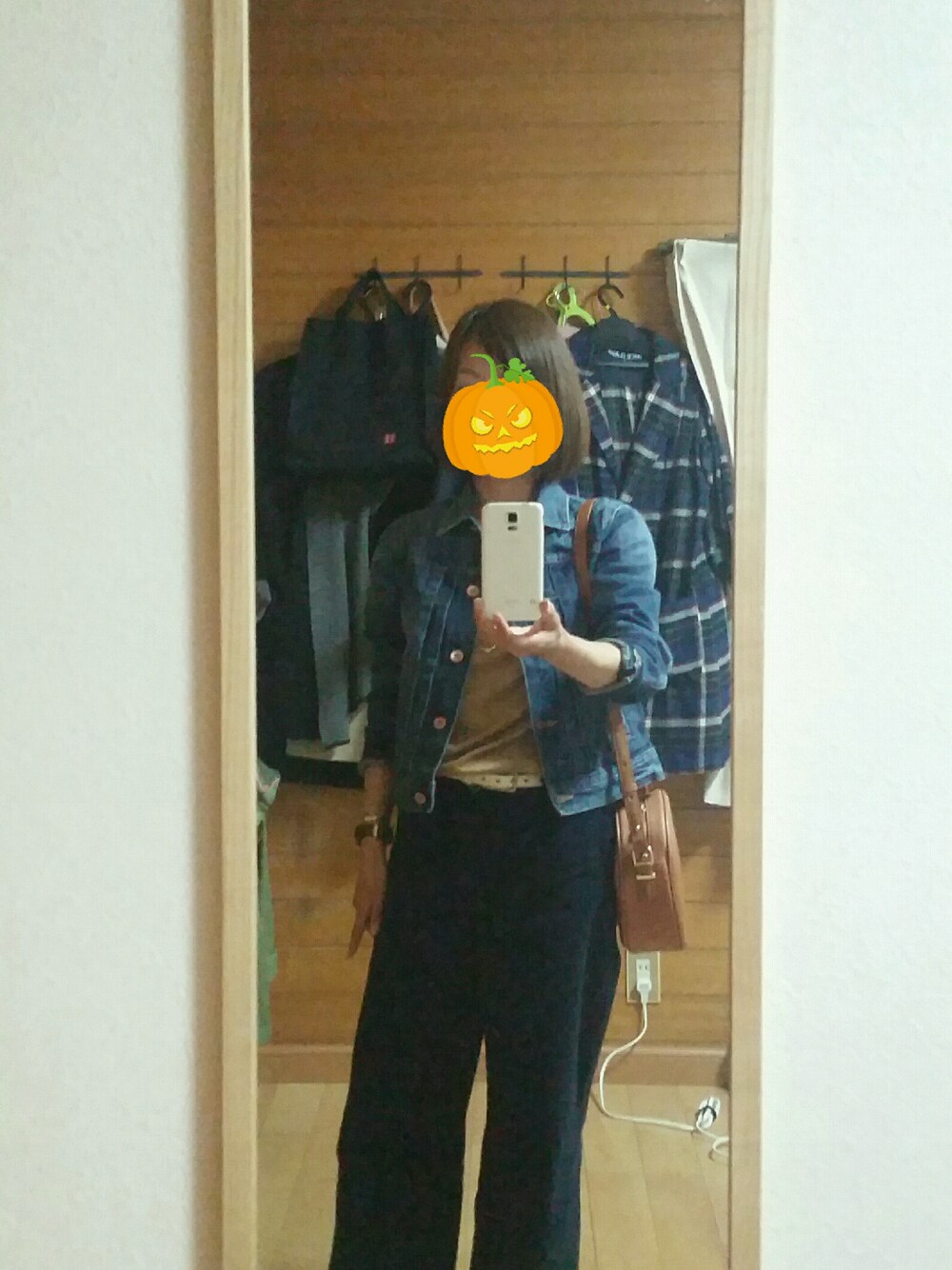 ワイドパンツ。 コーデュロイ。 トップスはスエード。