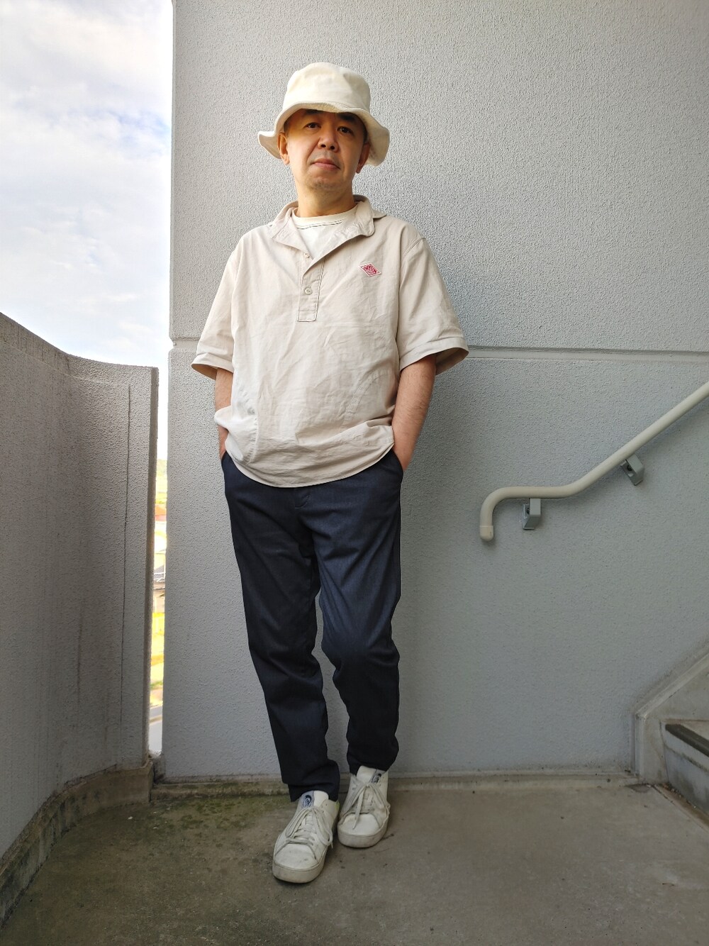 こんばんは!いつも、いいね!SAVEそして閲覧をして頂き、ありがとうございます!🤗🙇✨ あみぃさん 69zenzen69さん mariさん(3つも)素敵なフォルダーインありがとうございます!🤗🙇✨ 凄く励みになり嬉しいです!🤗 心から感謝します!🤗🙇✨ 本日のコーデはチャオパニックティピーのアイテムを使った、綺麗めカジュアル シンプルスタイル秋コーデになります。 トップスはチャオパニックティピー×Dantonのコラボアイテム、丸襟シャツをチョイス。 サラッとした肌触りが特徴のリネン素材を使用。 丸みのあるポケットやラウンドカラーの丸襟が程好いアクセントのお洒落な1枚。 インナーはチャオパニックティピーのペーパー天竺ステッチカラー半袖Teeのホワイトをチョイス。カラー展開は、ブラック ホワイト グレイッシュベージュ グリーンの4色展開。 定番の肩すそ周りはもちろん、裾周りにまでカラーステッチを施したこだわりのデザイン。前後差のある裾のスリットで、動きのある着こなしが楽しめます。ビッグシルエット なので、太めからタイトめまで合わせるパンツを選びません。 ごわつかないので、シャツやトレンドのオーバーオールのインナーとしてもオススメで使い勝手の良いお洒落な1枚。 パンツはチャオパニックティピーのワンダーツイルパンツのグレーをチョイス。 光沢感があり、スラックスのような穿き心地。素材は、コシがあり光沢感があるツイル素材。腰の辺りにはゴムが入っており、ウエスト周りを締め付けず、ストレス感がなく穿けるお洒落な1本。 またオールシーズン活躍する万能アイテムです。 足元はDIESELのローカットのホワイトスニーカーをチョイス。 ハットはコーデを爽やかなイメージにしたかったので、Dantonのホワイトのバケットハットをチョイス。 長文失礼しました🙏🙇 本日も宜しくお願い致します!🤗🙇✨