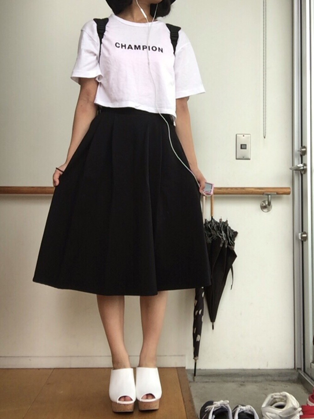 普段あまりないスカート👗 安定の黒白で行ってきます🚗💨