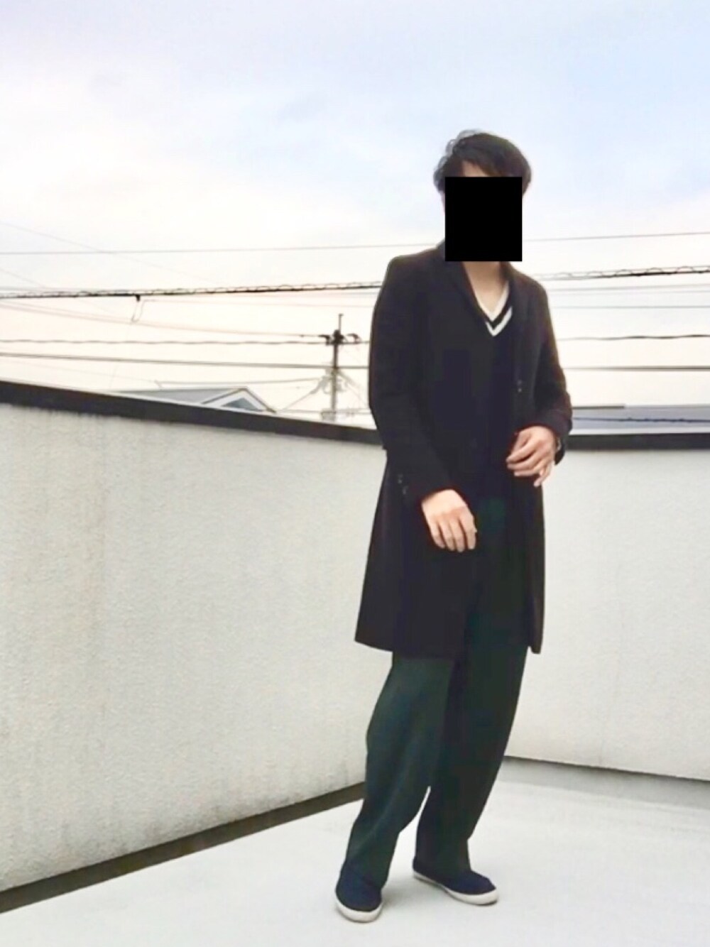 K.のチェスターコートを使ったコーディネート