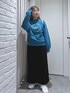 イエベさんにおすすめのターコイズカラーのスウェットをキレイめスカートに合わせて🙌 (骨格ストレート/イエベ春/普段サイズM)