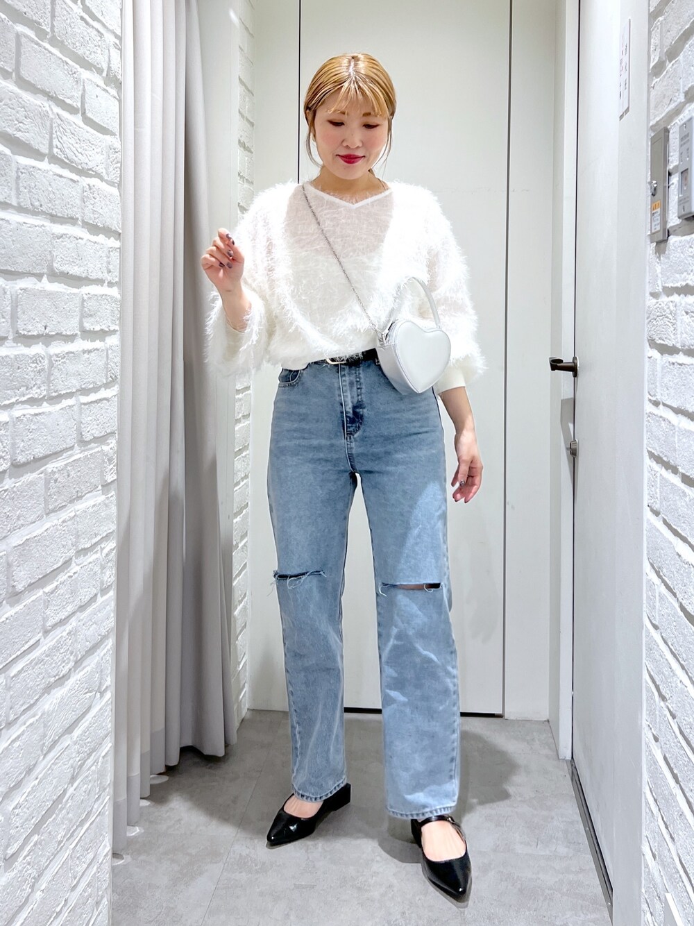 カットオフデニムを着回し💫 フェザーっぽいブラウスは透け感が可愛い前後2wayアイテム❤️ (骨格ストレート/イエベ春/普段サイズM)