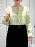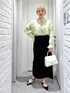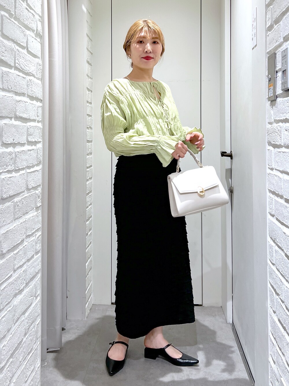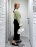 店頭でも人気の春カラーのブラウス☘️ タイトスカートもフリルが可愛くて🙆♀️ (骨格ストレート/イエベ春/普段サイズM)