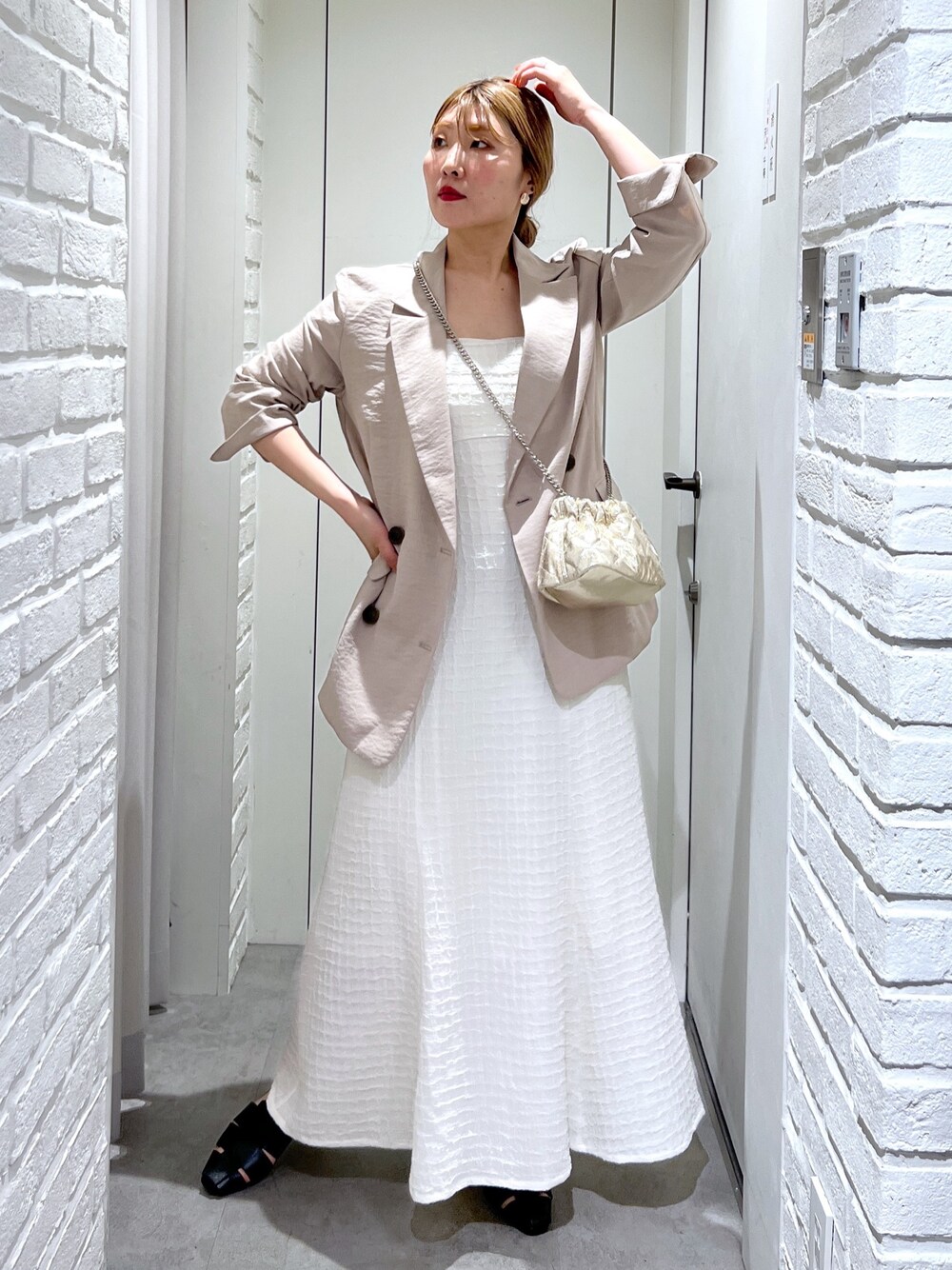 セットアップで購入したジャケットはワンピースに合わせてきれいめコーデにも🫶 (骨格ストレート/イエベ春/普段サイズM)