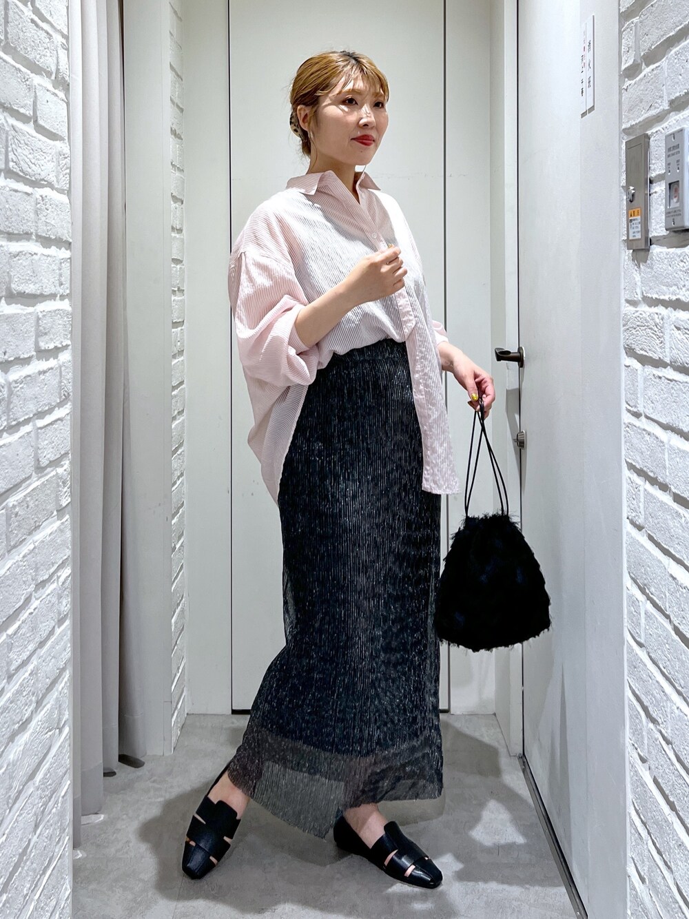 aya(FREE'S MART 天神地下街)のスカート「◆ラメプリーツナロースカート」を使ったコーディネート