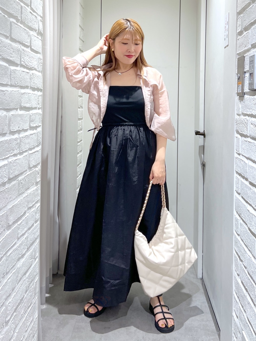 シアーブラウスは今年1枚ほしいアイテム💕ほんのりヌードな大人ピンクがかわいい🥰(骨格ストレート/イエベ春/普段サイズM)