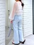 チュールブラウスを前を開けて着回し💫 デニムに合わせると甘辛で良い感じ🙆♀️ (骨格ストレート/イエベ春/普段サイズM)
