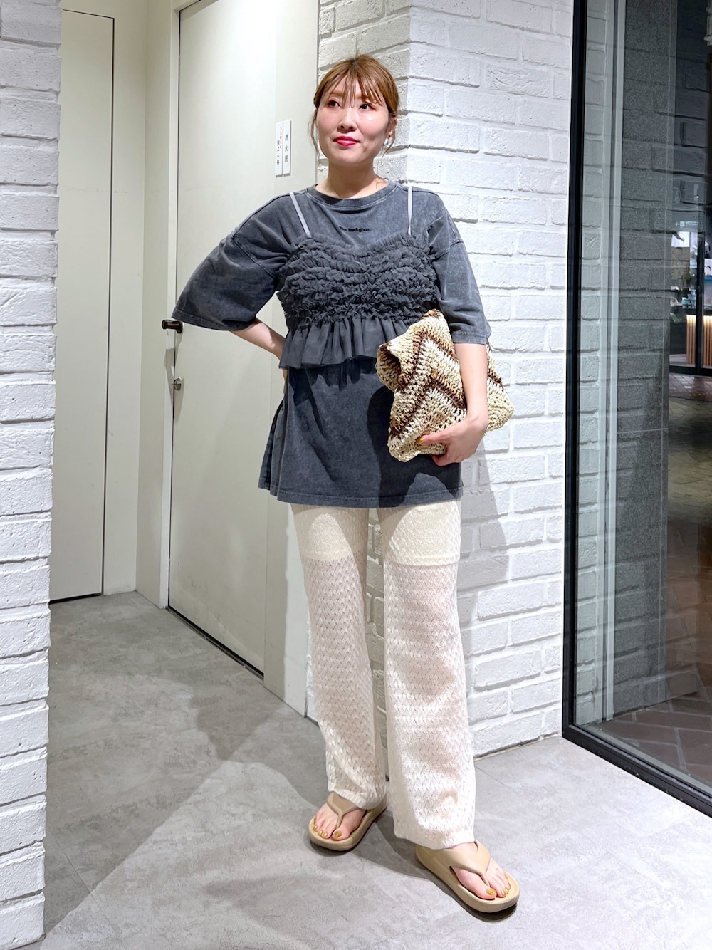 店頭にデザイン性の高い可愛いビスチェが溢れてて困る☁️チュールビスチェもその一つ💕短め、フィット感が🙆♀️ パンツは着回し💫 (骨格ストレート/イエベ春/普段サイズM)