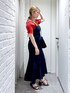 デニムのワンピースはシーズンレスで着まわせて🙆♀️赤トップス合わせで夏っぽく〜☀️ (骨格ストレート/イエベ春/普段サイズM)
