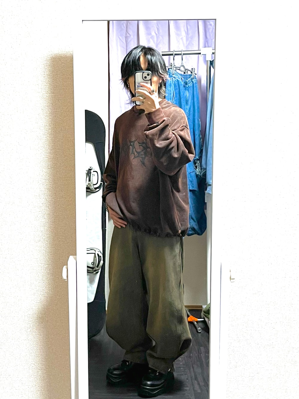 やまやまだのデニムパンツ「【GRANCY】ZipDesign Buggy DenimPants / ジップデザイン バギーデニム パンツ」を使ったコーディネート