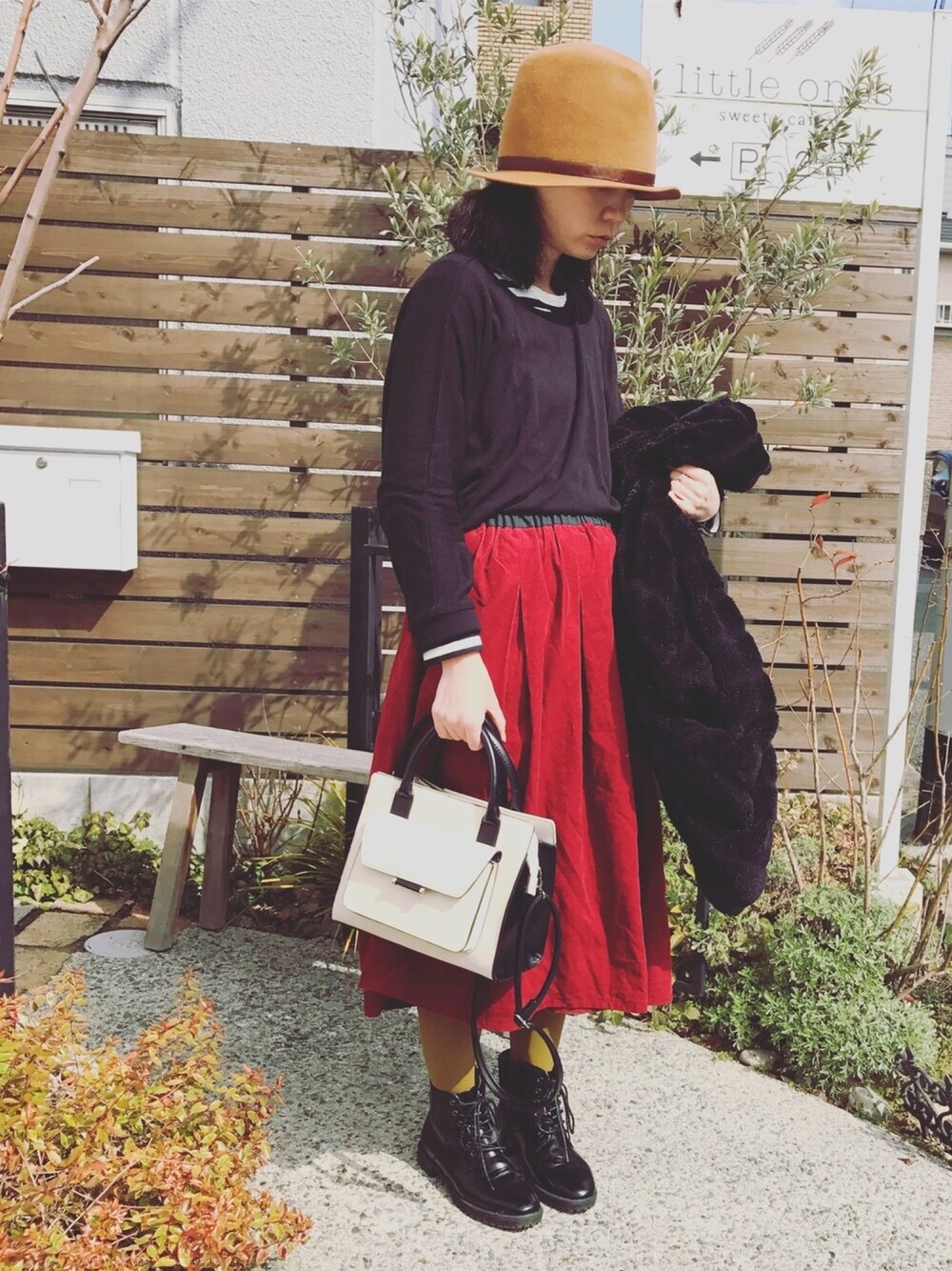 気付けばほとんどレプシムのもので コーディネートしてました。笑 コーデュロイ生地の真っ赤なロングスカート 映えます(*^_^*)