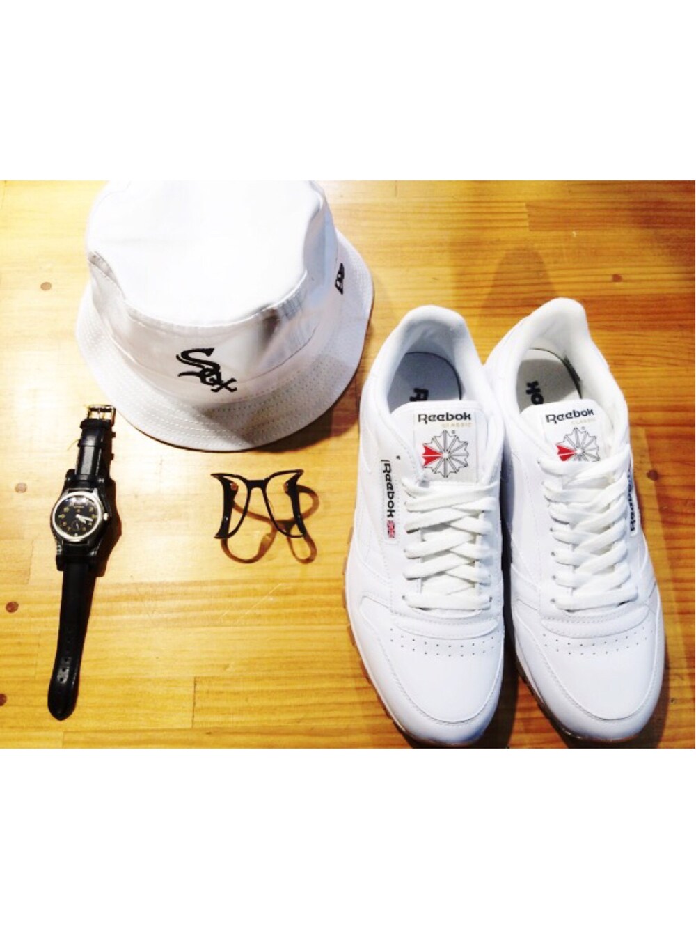 身の回りシリーズ 一つ一つのアイテムは何てことのないアイテムですが、共通の色で全体で全体のバランスを取ってみました。 上下でWhite 左右の腕周りでblack