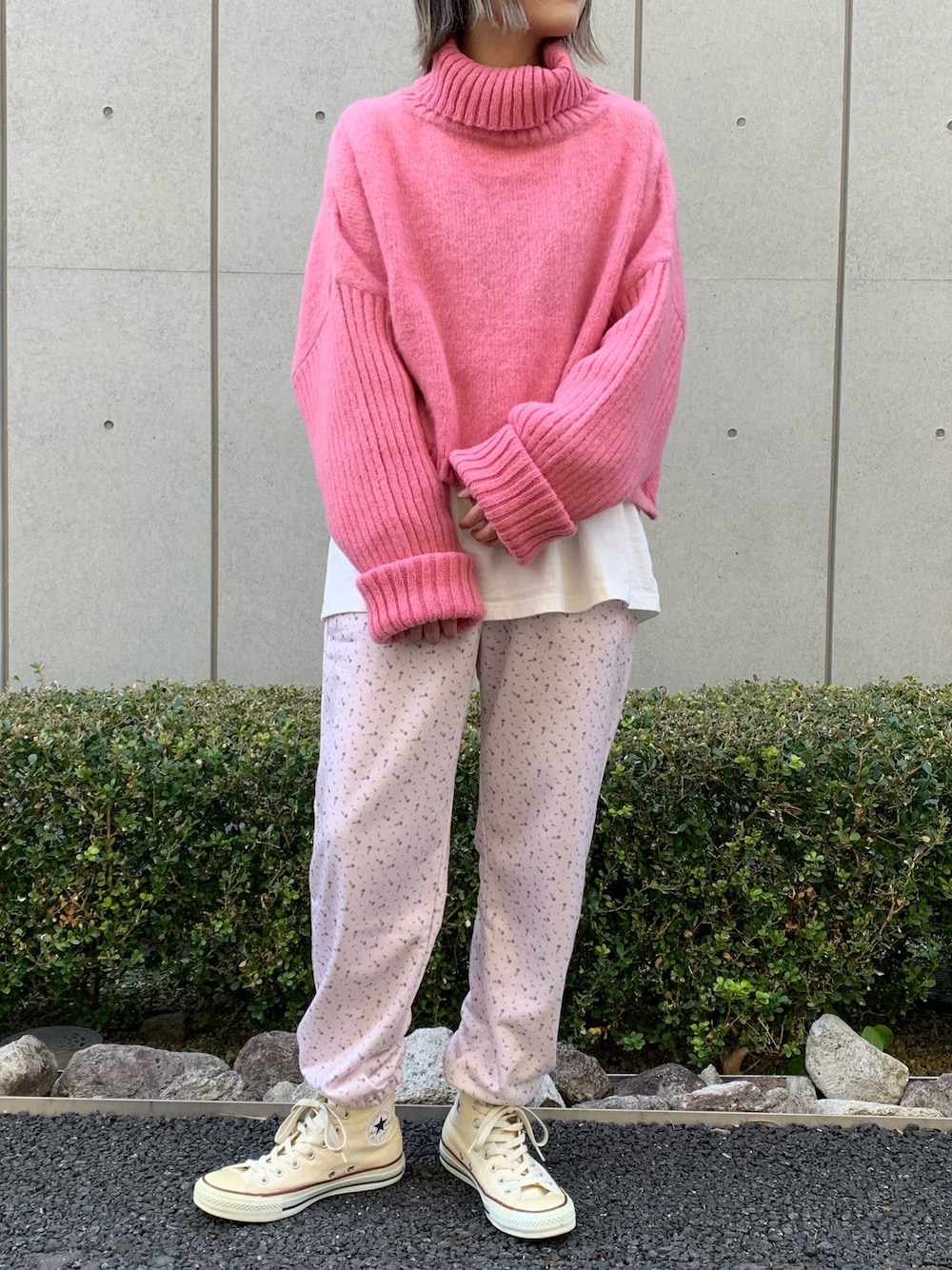 ピンクコーデ🩷 パンツは小花柄のスウェットで こなれ感が出るのでお気に入りです!