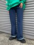 袖の花柄がポイントのスウェットに シンプルデニムで🟦 パンツはストレッチが効いてて 楽ちん!