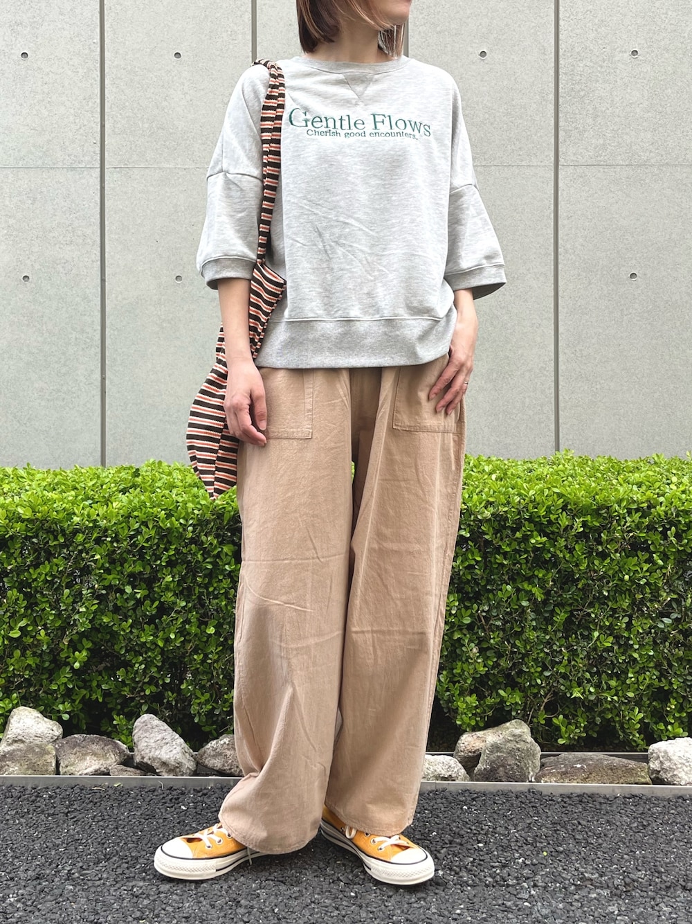 Nakamura(ANAP Online Official)のTシャツ/カットソー「ガーゼ裏毛 5分袖 ロゴ 刺繍 スウェット プルオーバー」を使ったコーディネート