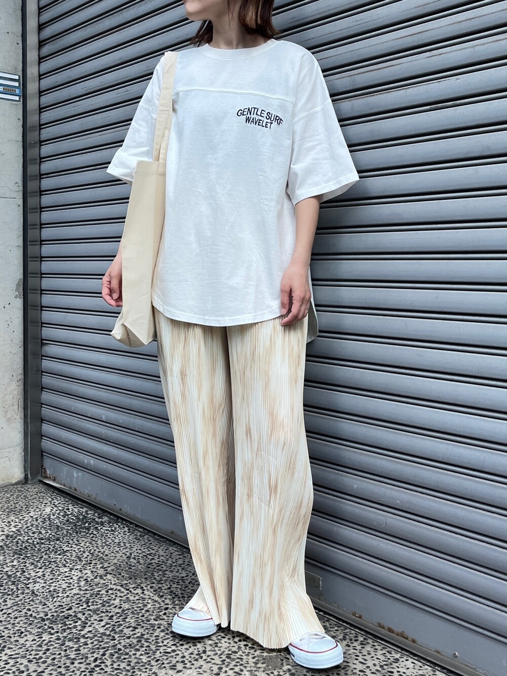 Nakamura(ANAP Online Official)のTシャツ/カットソー「コーデュロイ サーフ 刺繍 裾ラウンド コットン ビッグ Tシャツ」を使ったコーディネート