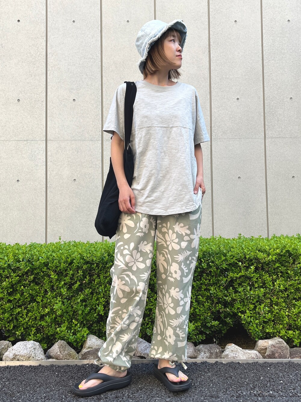 淡色コーデ🌺 花柄パンツにシンプルTシャツ🟩