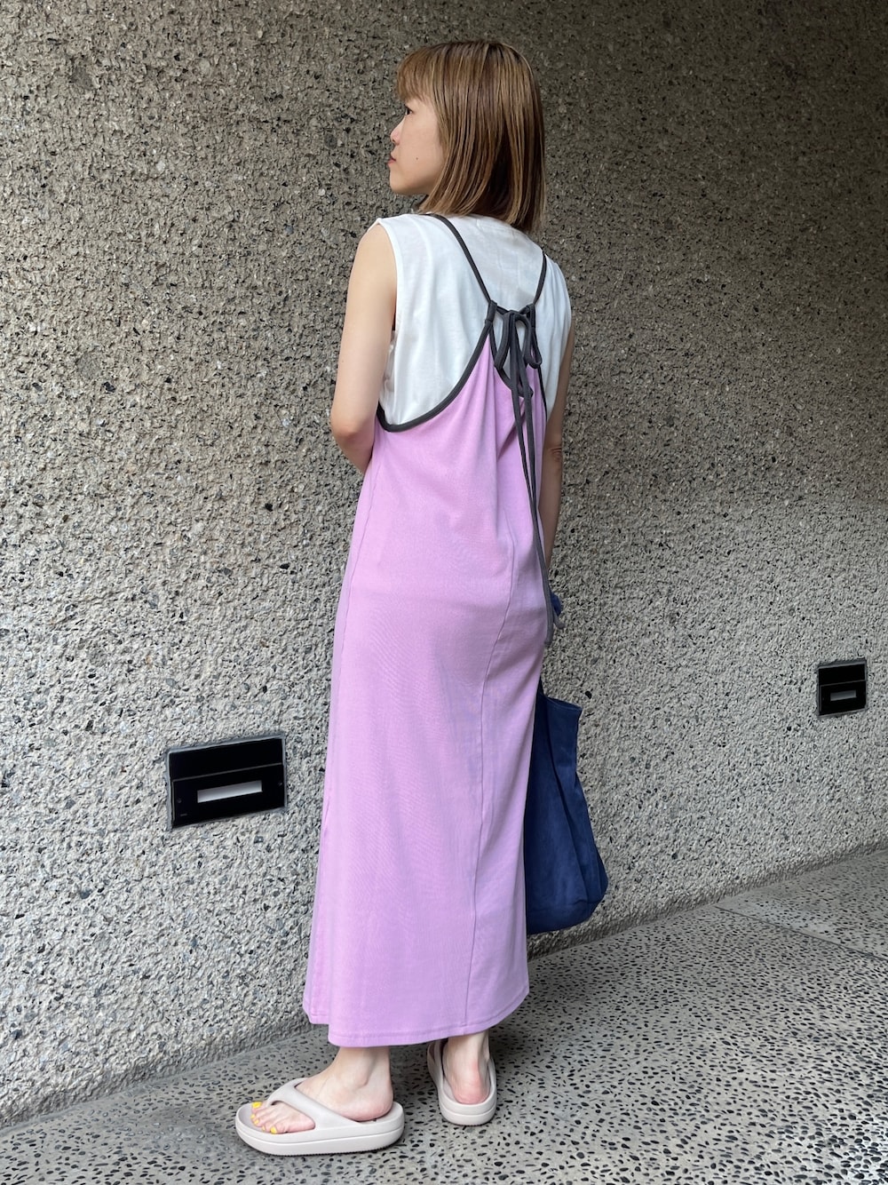色がかわいいワンピースを着たくて タンクトップとレイヤードしました🩷