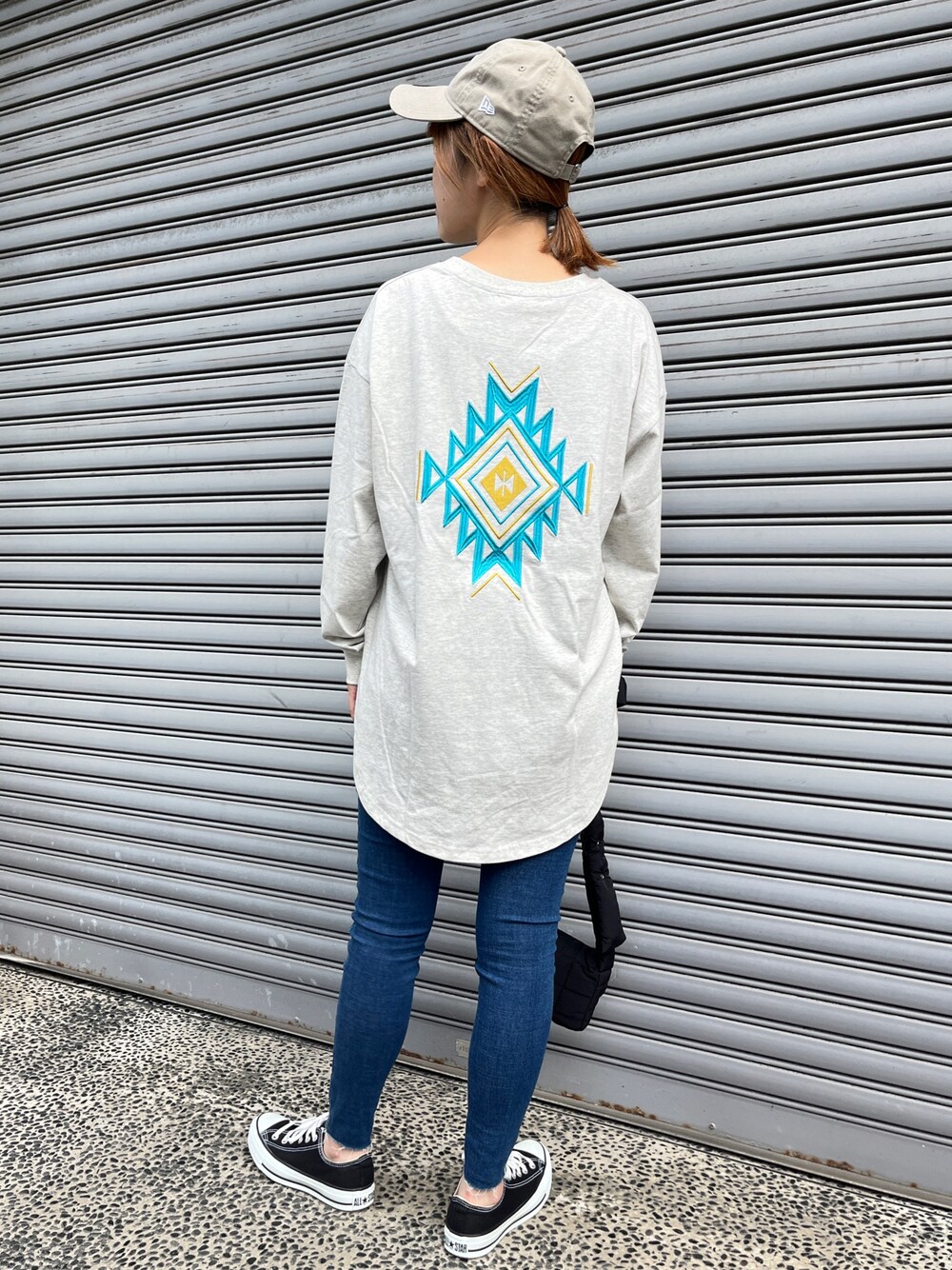 Nakamura(ANAP Online Official)のTシャツ/カットソー「オルテガ柄 ラウンドヘム 長袖 ビッグ ロンT」を使ったコーディネート