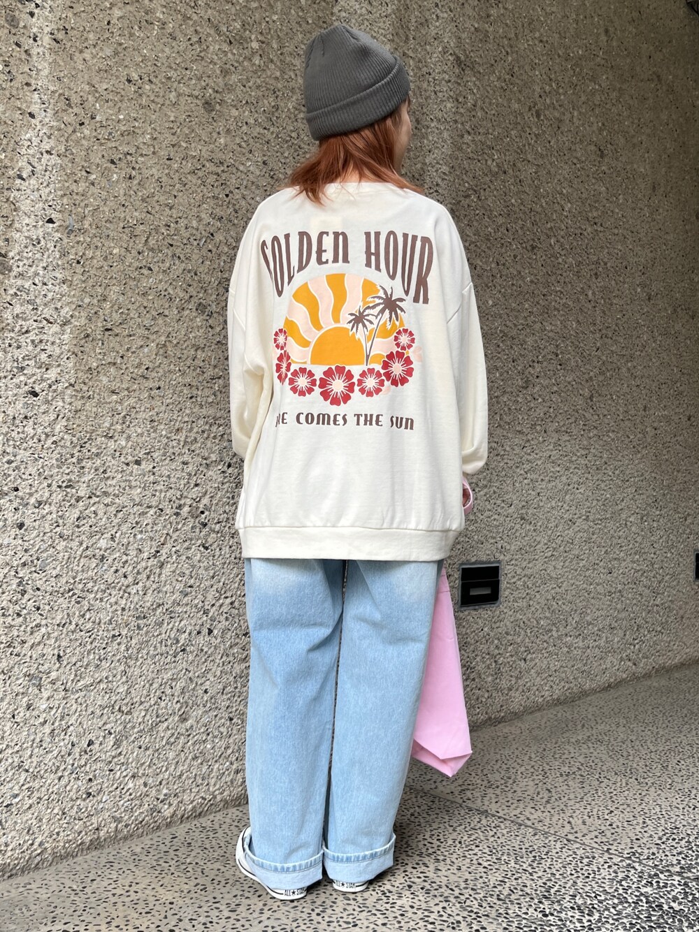 Nakamura(ANAP Online Official)のTシャツ/カットソー「ヴィンテージ風 サーフ プリント ビッグ スウェット トップス」を使ったコーディネート