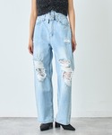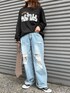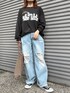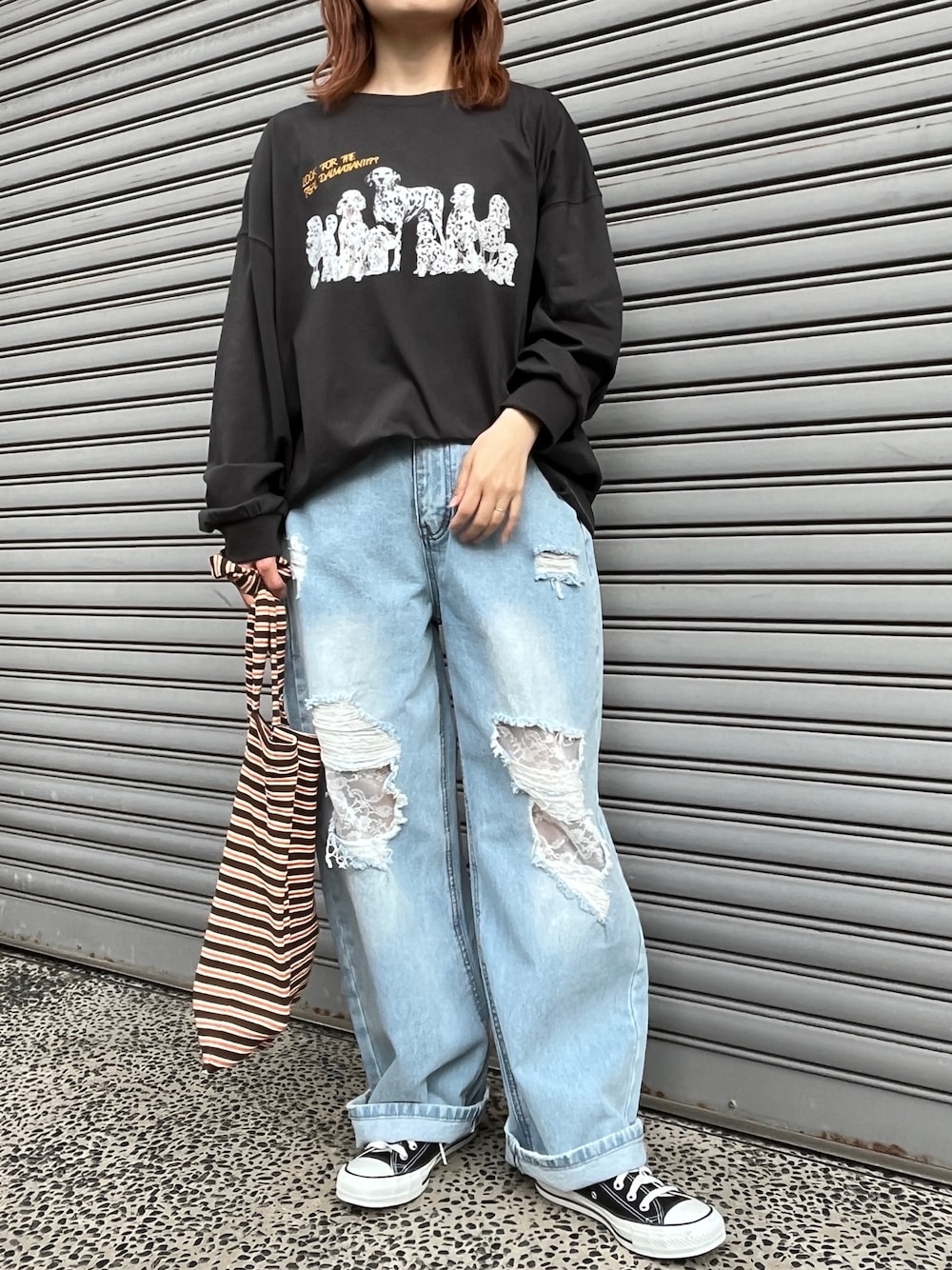 トレンドのレースデザインのデニムパンツをポイントにカジュアルに🩵