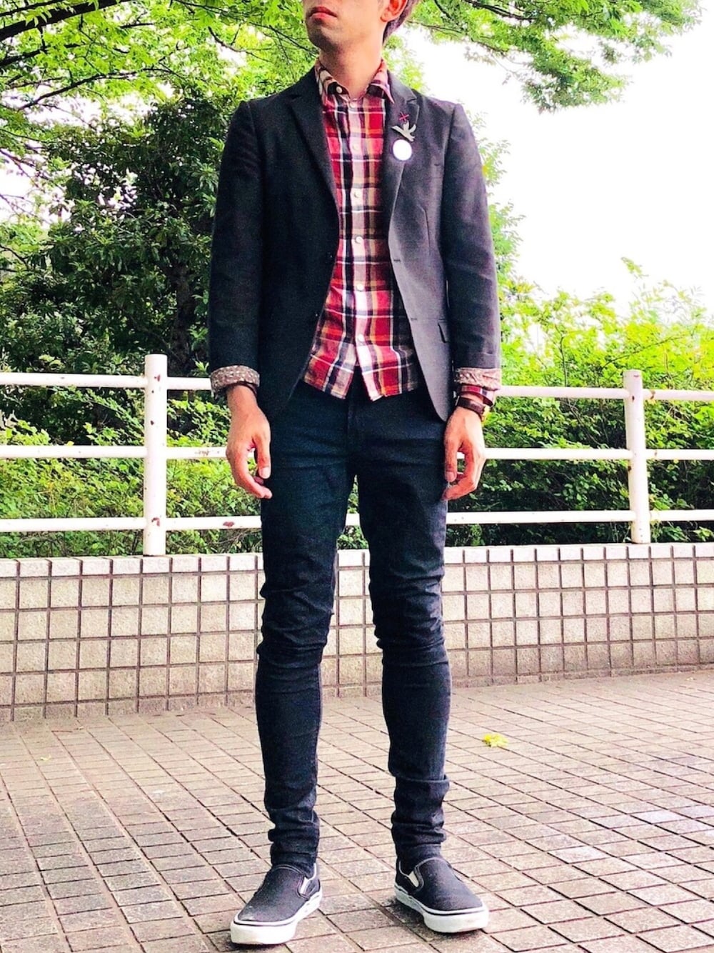 雨でいきなり肌寒くなったのでジャケットスタイル。 もう夏服だけで行けるかなと思って完全に衣替えしようかと思っていたのに、まだまだ油断できないですね。