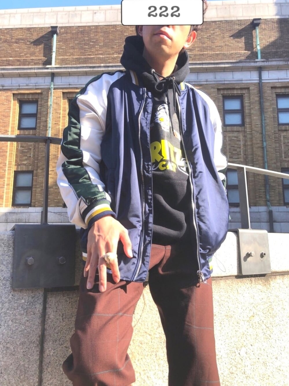 2/22はにゃんにゃんにゃんで猫の日なので猫モチーフを入れ込んでます。パーカーはリチャードソンのフリッツ・ザ・キャットとのコラボ。リングはフラボアのものです。
