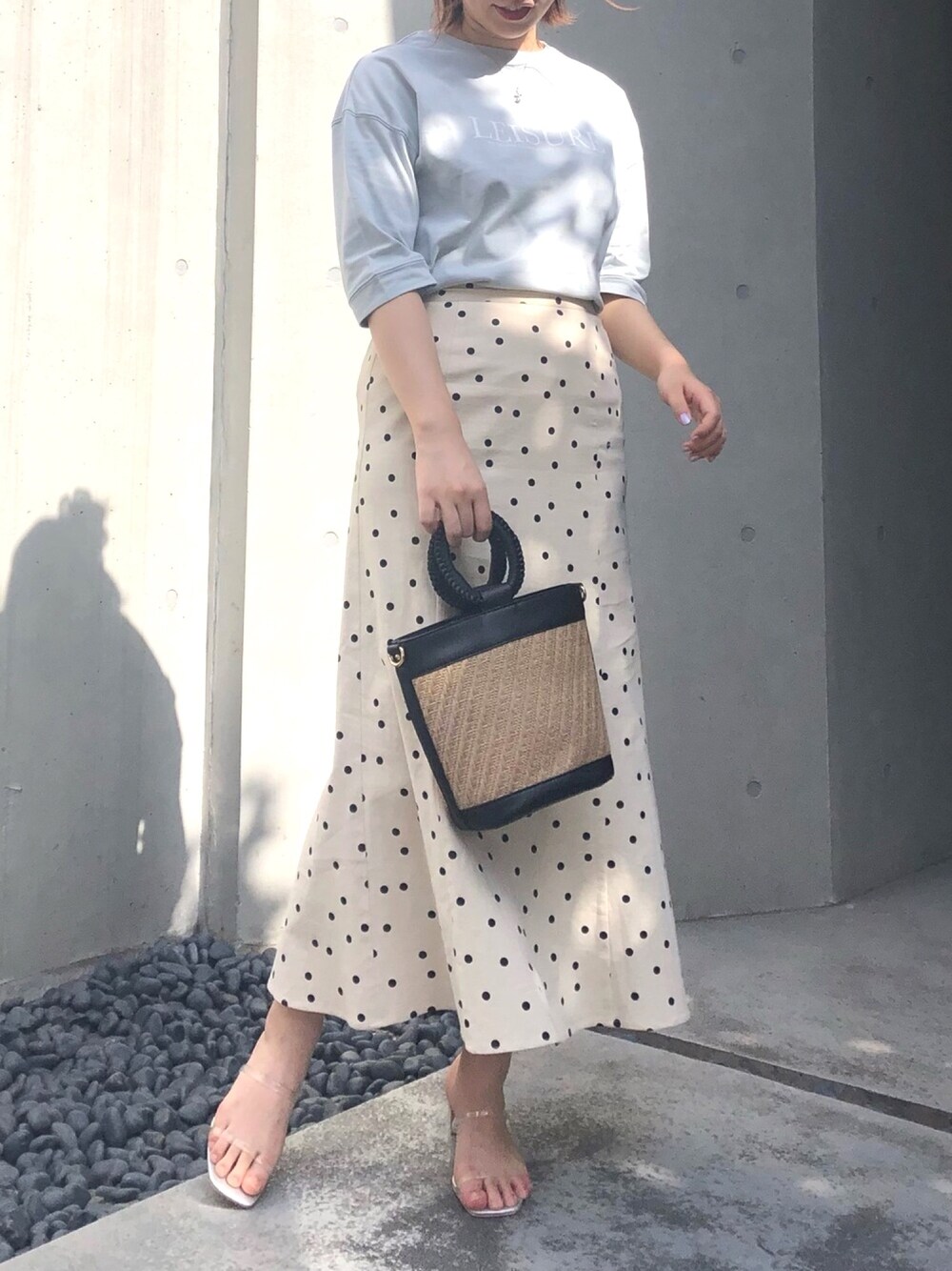 カジュアルなTシャツもドットスカートでガーリーに🥣🤍 Instagram → @6v6.madomado