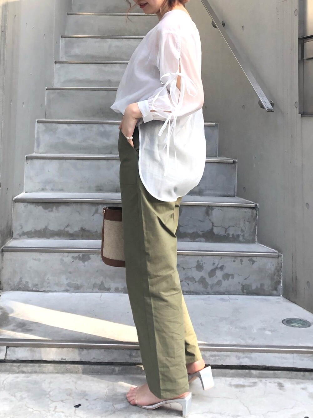 シンプルに見えるけど、さりげないリボンでかわいさも忘れないコーデ🌿🤍