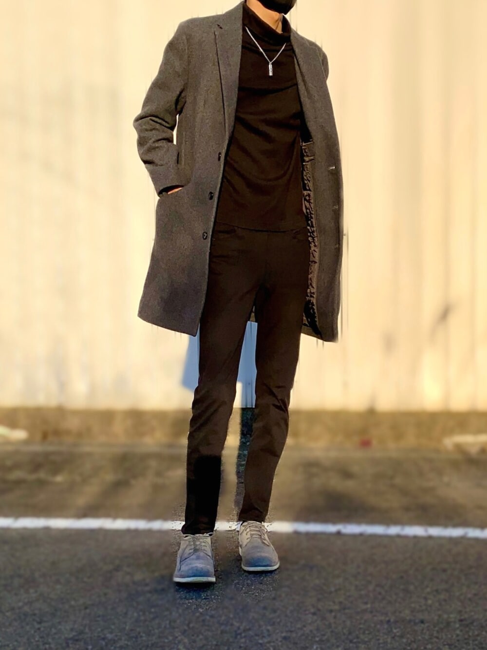 数ある投稿の中、ご覧いただきありがとうございます! ——————————————————————————————— 黒×グレーのチェスターコートを使った、シンプルな大人キレイめです✔︎