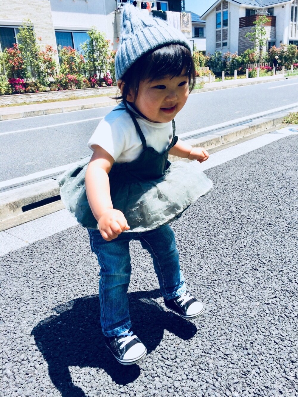 見てくださり、ありがとうございます♫ いいね、お気に入り、コメント、 とっても嬉しいです💕 今日のコーデ。 昨晩の豪雨☔️は何処へやら? 朝から快晴☀️いい天気😆✨ お散歩がてら買い物に出かけてきました♫ 昨日やっと夏用ニット帽をポチりました✌️ 届くまでニット帽コーデ我慢しようと 思ってたけど、どーしても我慢できず、 申し訳ないけど普通のニット帽 かぶせちゃいました🙇♀️ そうしたら結果、ものの5分で大汗💦かきだしたのでキャップにチェンジ😅 そりゃ、そうだよね〜😭 ごめんごめん🙏 早く夏用被ってお出かけしたいね〜♫ 大窓、ジャンプの瞬間いただきました📸 この、必死な顔ったらないわ〜🤣 1歳7ヶ月 身長77㎝ 体重9.5kg 足12㎝ トップス80 デニム90 靴13㎝