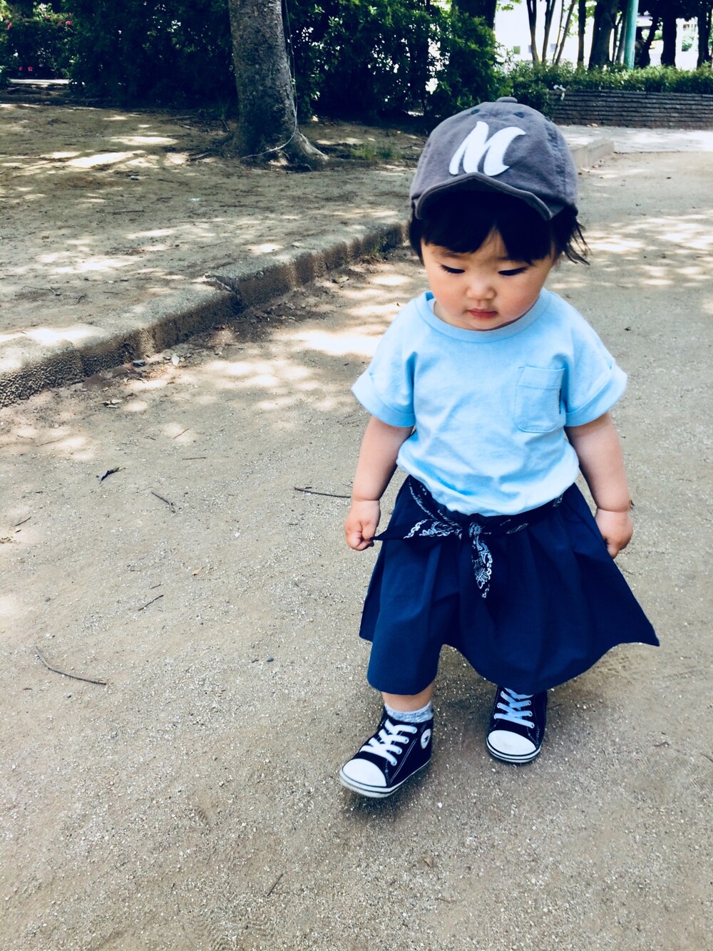 見てくださり、ありがとうございます♫ いいね、お気に入り、コメント、 とっても嬉しいです💕 今日のコーデ。 先日のquoti1000円offクーポンの時に、ついついポチってしまったワンピ🤦♀️ オフショルの感じがたまらなく可愛い💕 涼しげなブルーもなかなかです👍 欲張って90買ったけど、ウエストのゴムが止まり切らなくて… またもや、バンダナをベルトがわりにしました😊 うん。丈もいい感じ😆👏 はっ🤭‼️ この前、初参加した青フェスの時より青フェスなコーデになってるやないかーい😅 昨日はゆっくりWEARできなかったので、 これから皆さんのところ回らせてもいまーす🙌 1歳7ヶ月 身長77㎝ 体重9.5㎏ 足12㎝ ワンピース90 靴13㎝