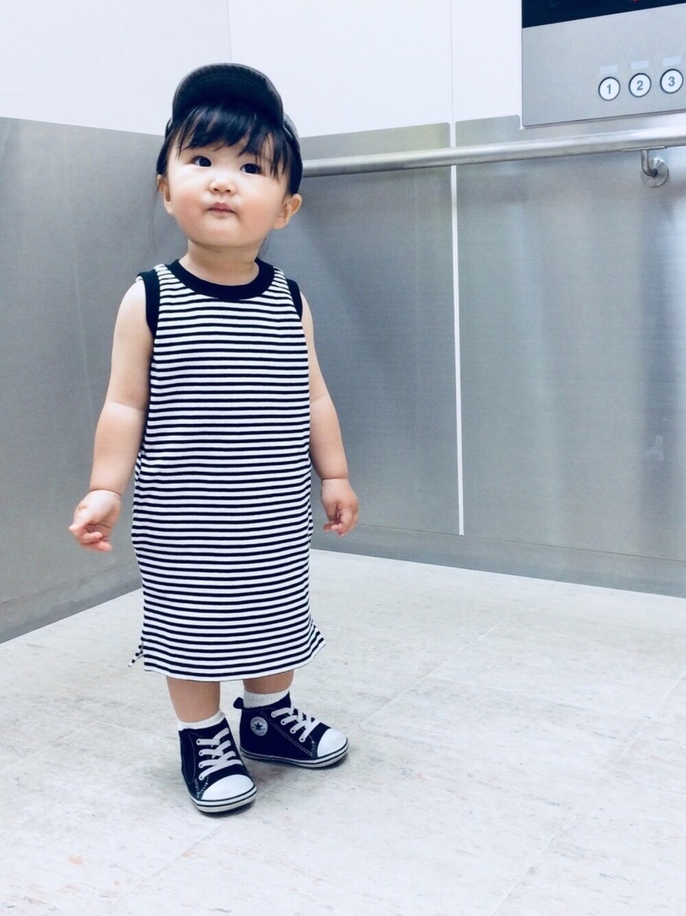 見てくださり、ありがとうこざいます♫ いいね、お気に入り、コメント、 とっても嬉しいです💕 お返事前にごめんなさい🙏 後でゆっくり返させてくださいね♫ 今日のコーデ。 この前のquotiクーポン。 情報キャッチに遅れを取りましたが、まったく問題なく買えました〜👍 あーたん情報なかったら完全スルーだったよ😅 感謝感謝🙇♀️🙏🙏 明日からお天気悪いみたいなので早速♫ シンプルボーダー✨✨落ち着く〜😊✨✨ これでサコッシュ付けてくれたら完璧だったのになぁ😭 全力で拒否られた〜💦 無念。。。😭 1歳7ヶ月 身長77㎝ 体重9.8㎏ 足12㎝ ワンピース90 靴13㎝