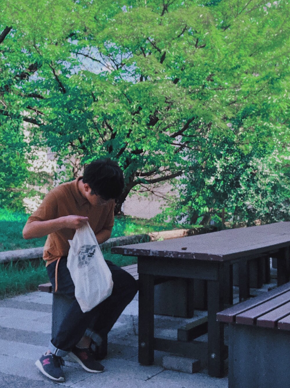 ニットポロはまだ暑い。 中にアサメリー挟んでます。 汗がしみるの防止。