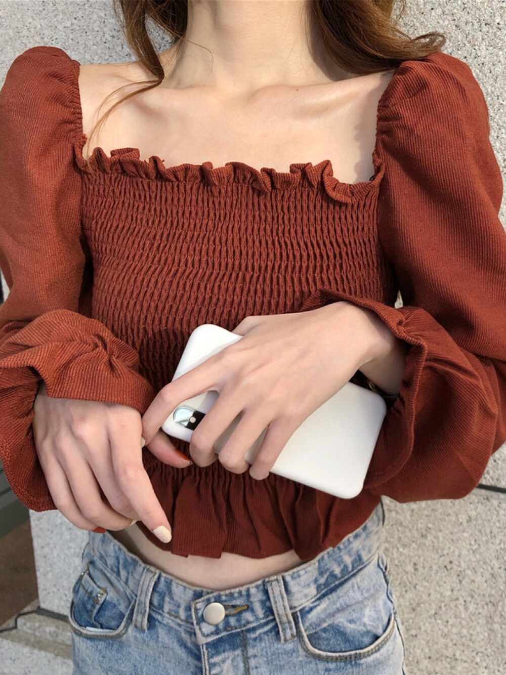 コーデュロイ素材のトップスです❤️形が韓国女子で可愛い😍🇰🇷💕ホワイトもあります♬詳細はInstagramにてfanfuni27を検索してみてね👀