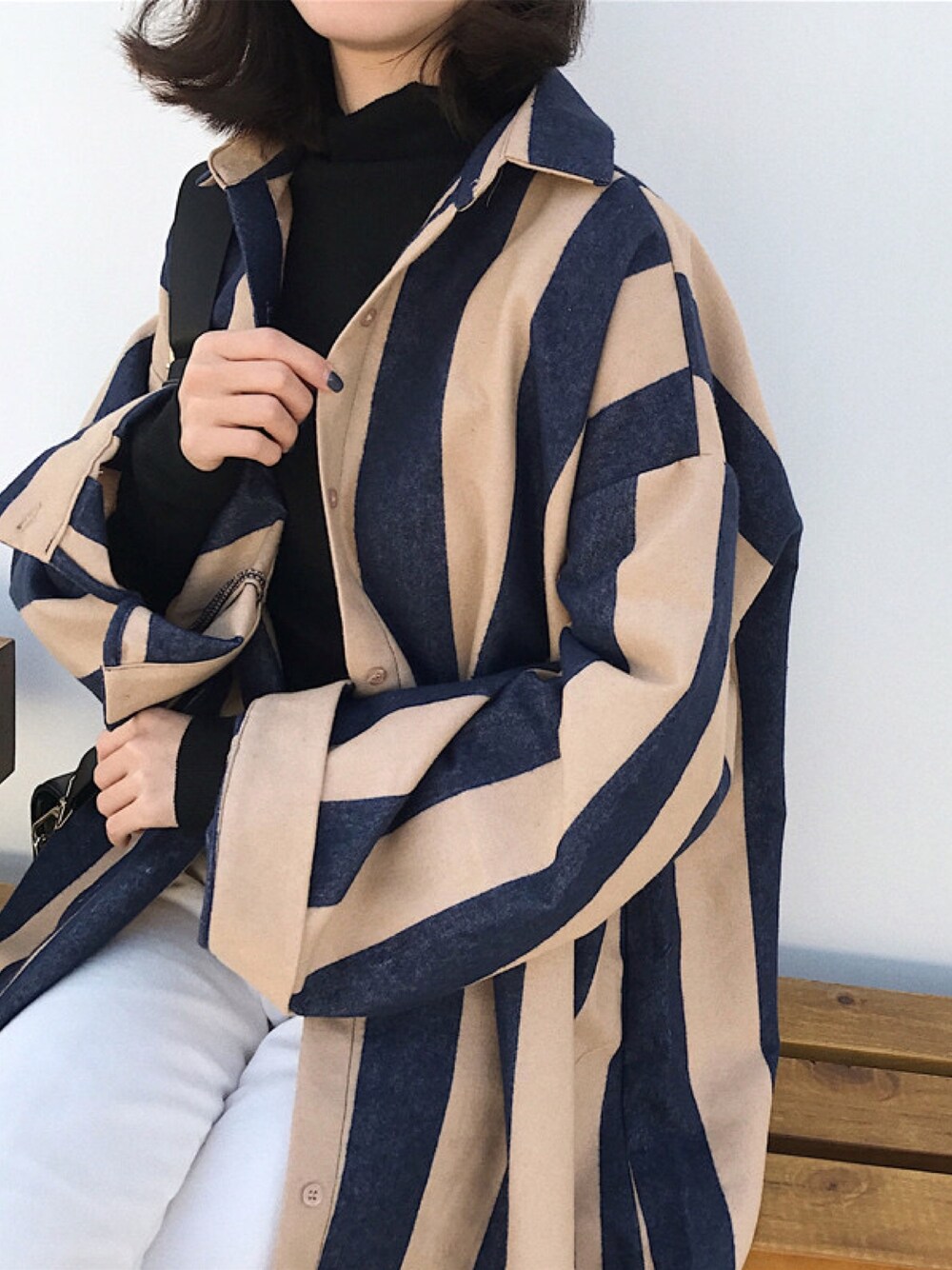 ビックシルエットのオーバーシャツです🧥太ストライプがとっても可愛い❤️シンプルコーデにアクセントを✨