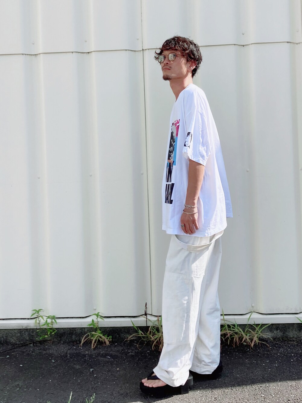 ホワイトコーデに柄Tシャツでバランスとります。 よければインスタも始めましたので☺︎ http://instagram.com/shusk9289 @shusk9289 です☺︎ ホーム画面にもリンク貼ってありますので、覗いてみてください😊待ってますね! いつもいいね、セーブ、フォローしてくださりありがとうございます😊