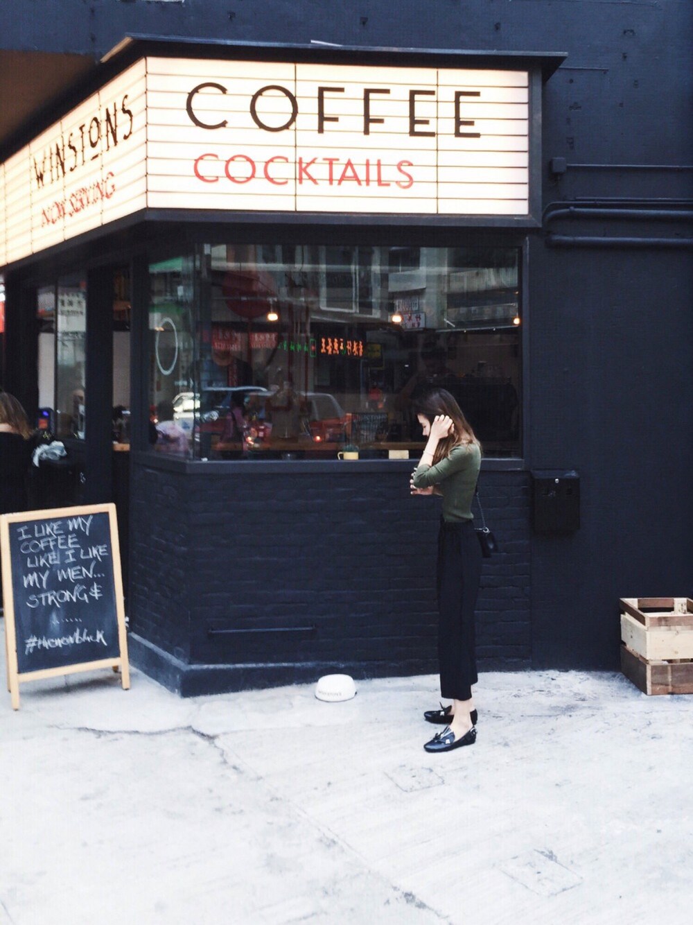 ブラック系のショルダーバッグを着用したレディースの冬コーディネートの1枚目の写真