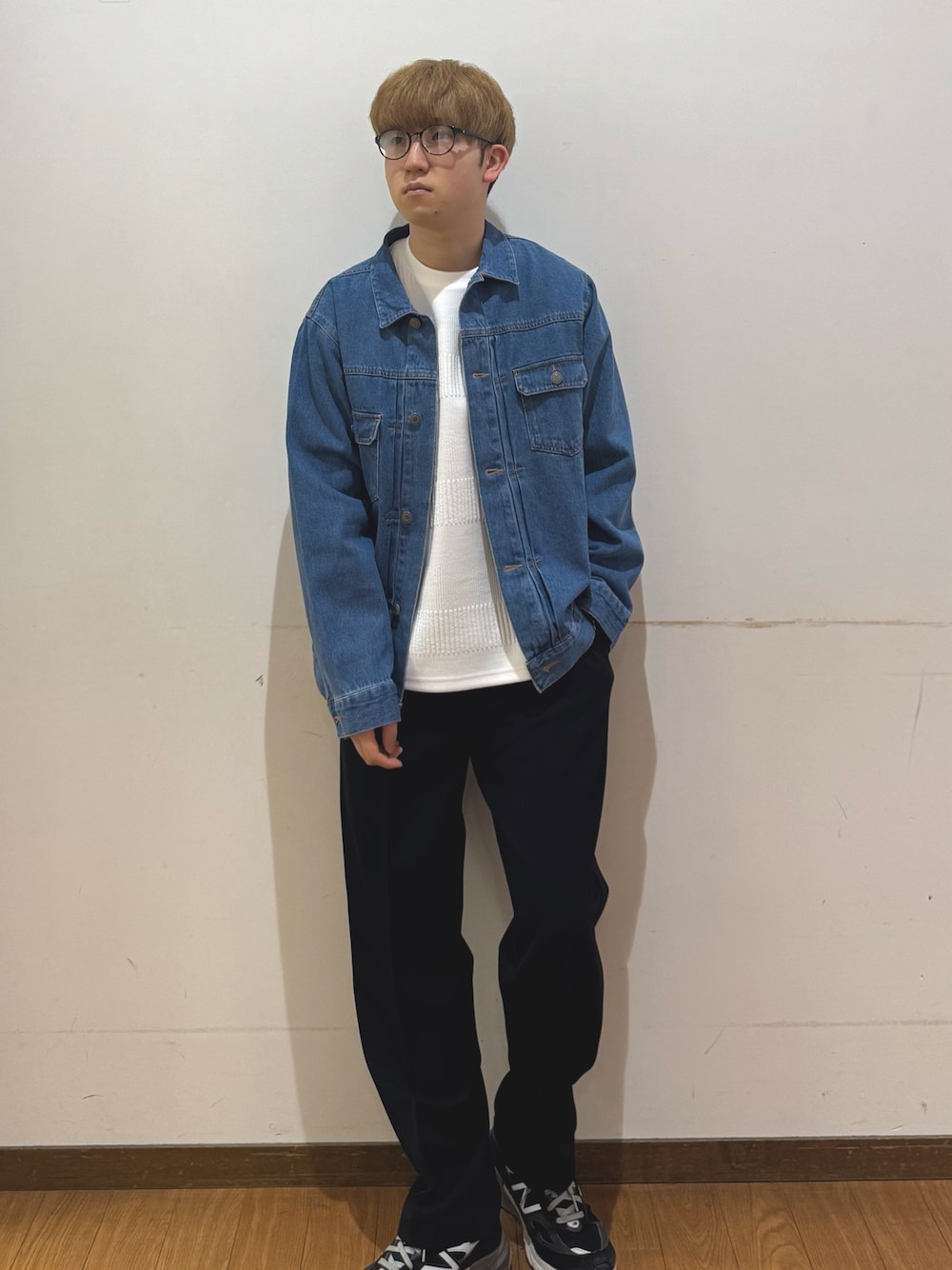 みなさまこんにちは ご覧いただきありがとうございます 本日のコーディネートをご紹介いたします デニムジャケットにパターン模様のインナーを使ってキレイ目カジュアルコーディネートいたしました デニムジャケットはスッキリめの作りとなっており、春のアウターとしてとても使いやすいと思います。1枚来ていただくだけで、様になりやすいです インナーはシンプルな作りですが、パターンが入っており、従来の白のロンTとは違ったオシャレ感を出すことができます。肌触りも滑らかで、使いやすいアイテムです パンツは黒のスラックスを使用しております お仕事周りでも使用できるオススメアイテムです よろしければお試しください!
